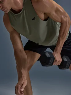 Koszulka na trening dla mężczyzny - CECHY: zakres rozmiarów S–XXL – dopasowanie do różnych sylwetek krój regular – komfortowe dopasowanie bez ograniczania ruchów standardowa długość do bioder – uniwersalny fason do codziennego użytku materiał syntetyczny – trwały i łatwy w pielęgnacji dodatek elastanu (12%) – zapewnia elastyczność i swobodę ruchu jednolita kolorystyka – pasuje do wielu sportowych i casualowych zestawień strukturalna dzianina interlock – miękka, wytrzymała o strukturze zwiększającej przepływ powietrza okrągły dekolt – klasyczne wykończenie pod szyją perforowany materiał na plecach – wspomaga cyrkulację powietrza szerokie, surowo wykończone otwory na ramiona – nowoczesny design i wygoda technologia 4FDry – szybkoschnące włókna efektywnie odprowadzają wilgoć Dowiedz się: Jak prać odzież i obuwie sportowe? Tank-top treningowy męski - niezawodne wsparcie i komfort na każdym etapie treningu Głównym celem odzieży z linii treningowej jest zapewnienie wygody i wsparcia podczas każdego rodzaju treningu o różnym stopniu zaawansowania i intensywności. Dzięki szybkoschnącym, elastycznym materiałom i wygodnemu dopasowaniu koszulka zapewni pełną swobodę ruchów, pozwalając na maksymalne skupienie i komfort podczas ćwiczeń. Posiada krój regular, który wygodnie dopasowuje się do sylwetki oraz standardową długość sięgającą do linii bioder.