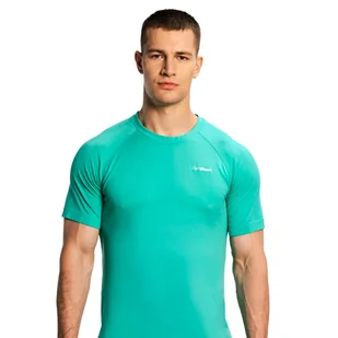 Koszulka męska - krótki rękaw • Kolor: zielona • Materiał: 100% nylon • Właściwe zastosowanie: prowadzenie • Krój: loose (wolny)