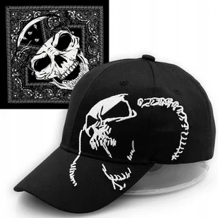 W komplecie z czapką bandamka widoczna na zdjęciu. Czapka z daszkiem bejsbolówka z oryginalnym wyszywanym motywem czaszki. Czapka doskonała na wiosenno-letni...