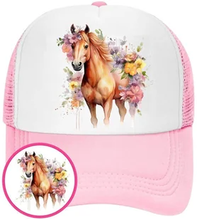 Czapka z Daszkiem Konie Koń Różowa z Nadrukiem Lato Siatka Bejsbolówka