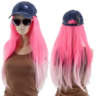 DAMSKA CZAPKA Z DASZKIEM PERUKĄ DŁUGIE PROSTE WŁOSY DŁUGOŚĆ 40CM RÓŻOWY Damska czapka z daszkiem i peruką Stylowa czapka z daszkiem idealnie uzupełni każdy codzienny outfit. Czapka posiada możliwość regulacji, zatem łatwo można ją dopasować do swoich potrzeb. Włosy do złudzenia przypominają naturalne, schowaj swoje włosy pod czapką i w mgnieniu oka zmienisz się w kogoś innego. Bejsbolówka z naturalnie wyglądającymi włosami ⭐️⭐️⭐️⭐️⭐️