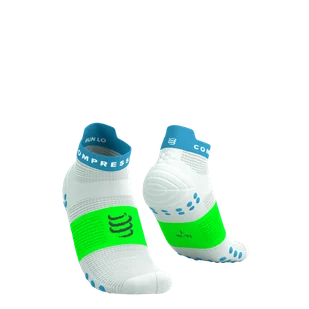 COMPRESSPORT Skarpetki do biegania krótkie PRORACING SOCKS V4 RUN LOW white/norse blue/neon green