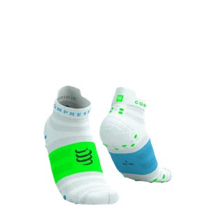 COMPRESSPORT Skarpetki do biegania PRORACING SOCKS V4 ULTRALIGHT RUN LOW white/norse blue/neon green
