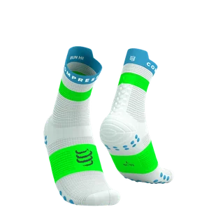 COMPRESSPORT Skarpetki do biegania wysokie PRORACING SOCKS V4 RUN HIGH white/norse blue/neon green