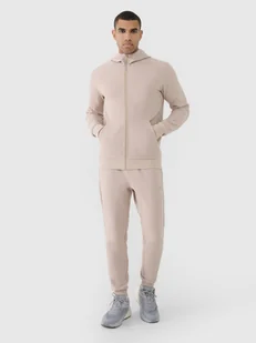 Spodnie dresowe joggery męskie idealnie sprawdzą się jako element zarówno casualowych, jak i sportowych stylizacji na co dzień. Posiadają krój regular, który wygodnie dopasowuje się do sylwetki oraz zwężane nogawki zakończone elastyczną gumką. Dresy 4F dla mężczyzny z dzianiny strukturalnej o diagonalnym splocie, o średniej gramaturze 285 gsm, która sprawia, że są one miękkie oraz bardziej przewiewne. Męskie spodnie dresowe są wykonane z materiału syntetycznego, który zapewnia trwałość i jest łatwy w pielęgnacji. Dodatek bawełny (42%) sprawia, że materiał jest miękki i przyjemny w dotyku.