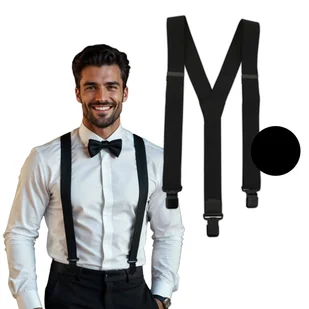 Czarne szelki do spodni z czarnymi żabkami SZ150 Czarne szerokie szelki męskie do spodni. Super cena! Polski producent! Mocne szerokie czarne żabki; Łączenia wykonane ze skóry naturalnej Najwyższej jakości guma galanteryjna Elastyczne taśmy o szerokości 4 cm Regulacja: 80-110 cm. Zapakowane w elegancki kartonik Doskonałe na prezent Cechy produktu: Wzór: Gładki Dominujący kolor: Czarny waga opakowania: