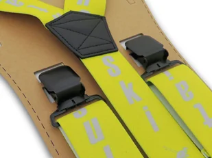 Super cena! Polski producent! Mocne szerokie stalowe żabki; Łączenia wykonane ze skóry naturalnej Najwyższej jakości guma galanteryjna Szelki typu X Elastyczne taśmy o szerokości 4 cm Regulacja: 75-110 cm. Skład gumy: 73% polieter, 27% elastodine Doskonałe na prezent Cechy produktu: Wzór: Inny Dominujący kolor: Czarny|Żółty waga opakowania: