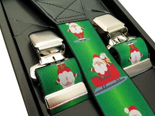 Zielone świąteczne szelki do spodni w Gwiazdory, Mikołaje SZ92 Zielone szelki w świąteczny wzór - Gwiazdory, Mikołaje Super cena! Polski producent! Mocne stalowe żabki z plastikowym dociskiem Silne mocowanie Najwyższej jakości drukowana guma galanteryjna Elastyczne taśmy o szerokości 4 cm Skórzane łączenia Regulacja: 75-110 cm. Wygodne i uniwersalne. Idealne na prezent! Cechy produktu: Wzór: Inny Dominujący kolor: Zielony waga opakowania: