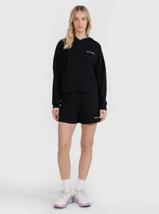 Damskie spodenki dresowe są wykonane w 80% z bawełny, dzięki czemu są miękkie, trwałe i przyjemne w dotyku. Dodatek poliestru (20%) sprawia, że materiał utrzymuje fason i jest odporny na zużycie nawet przez wiele sezonów. Dzianina dresowa french terry z jednej strony jest gładka, natomiast z drugiej posiada widoczny splot w postaci pętelki. Dzianina w tym splocie jest miękka, bardziej lejąca i cieńsza w dotyku. Szorty dresowe damskie wykonane z dzianiny o średniej gramaturze 300 gsm, która sprawia, że są one miękkie oraz bardziej przewiewne.