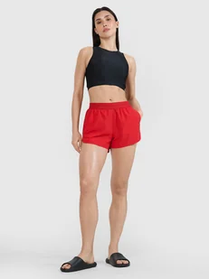 Linia BEACHWEAR BASIC to wyselekcjonowana kolekcja złożona z różnorodnych modeli kąpielówek i szortów kąpielowych. W kolorystyce przeważają czernie i granaty, ale nie brakuje też charakterystycznych dla lata kolorów. Ważnym elementem tej linii jest wykorzystanie neonowych kolorów. Spodenki plażowe damskie wykonane z lekkiego szybkoschnącego materiału zapewnią komfort i swobodę ruchów w trakcie codziennych letnich aktywności, odpoczynku na plaży czy rekreacyjnego pływania. Posiadają krój regular, który wygodnie dopasowuje się do sylwetki oraz krótkie nogawki do połowy uda.