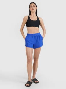 Linia BEACHWEAR BASIC to wyselekcjonowana kolekcja złożona z różnorodnych modeli kąpielówek i szortów kąpielowych. W kolorystyce przeważają czernie i granaty, ale nie brakuje też charakterystycznych dla lata kolorów. Ważnym elementem tej linii jest wykorzystanie neonowych kolorów. Spodenki plażowe damskie wykonane z lekkiego szybkoschnącego materiału zapewnią komfort i swobodę ruchów w trakcie codziennych letnich aktywności, odpoczynku na plaży czy rekreacyjnego pływania. Posiadają krój regular, który wygodnie dopasowuje się do sylwetki oraz krótkie nogawki do połowy uda.