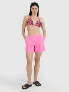Szorty na plażę damskie wykonane z materiału o średniej gramaturze 120 gsm, która sprawia, że są one bardzo lekkie. Spodenki nie posiadają podszycia. Wykonane w technologii 4Way Stretch, która sprawia, że materiał rozciąga się we wszystkich kierunkach (w pionie i poziomie). 2 otwarte kieszenie po bokach. Guma w pasie zapewnia wygodne dopasowanie.