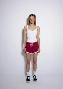 Te szorty to połączenie wygody i stylu, który przyciąga spojrzenia. Głęboki, bordowy odcień robi robotę, a dopasowany krój ładnie podkreśla sylwetkę, nie odbierając Ci luzu. Uszyte z miękkiej bawełny – są lekkie, przewiewne i gotowe na wszystko: od miejskiego spaceru po spontaniczne wyjście z ekipą. Wrzuć do tego prosty top i masz gotowy set, który wygląda jak z lookbooka.