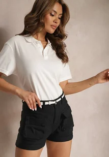 Czarne Bawełniane Szorty Bermudy z Wysokim Stanem i Kieszeniami Zolata