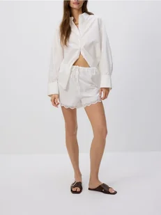 Reserved - Szorty z koronkową wstawką - biały