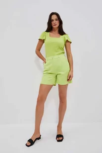 85%POLIESTER, 10%LEN, 5%BAWEŁNA Eleganckie szorty w kolorze limonkowym. Wysoki stan, bardzo komfortowy w noszeniu. Krótkie i proste nogawki, do połowy uda. W...