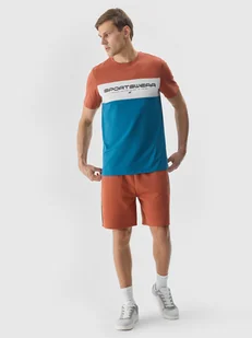 Linia COLOUR BLOCKING inspirowana jest współczesną architekturą i przestrzenią miejską. Kolorystyka w tej kolekcji składa się z ciemnych odcieni niebieskiego, szarości, żółci oraz brązów. Istotnym akcentem są wyraziste typograficzne nadruki. Spodenki dresowe męskie idealnie sprawdzą się jako element zarówno casualowych, jak i sportowych stylizacji na co dzień. Posiadają krój regular, który wygodnie dopasowuje się do sylwetki oraz długość przed kolano.