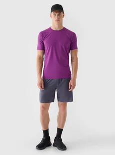 Dzięki dodatkowi elastanu (8%) są rozciągliwe i wygodnie układają się na sylwetce. Krótkie spodenki do ćwiczeń męskie z szybkoschnącymi włóknami w technologii 4FDry, które wspierają odprowadzanie wilgoci z dala od ciała. 2 otwarte kieszenie po bokach. Elastyczny pas z wewnętrzną regulacją na sznurki zapewni dopasowanie. Rozcięcia u dołu dają jeszcze większą swobodę ruchu.