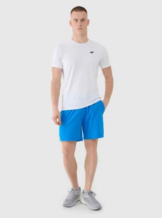 Posiadają średni stan oraz krótkie nogawki. Krótkie spodenki treningowe męskie są wykonane z materiału syntetycznego, który zapewnia trwałość i jest łatwy w pielęgnacji. Dzięki dodatkowi elastanu (10 %) są rozciągliwe i wygodnie układają się na sylwetce. Krótkie spodenki sportowe męskie z szybkoschnącymi włóknami w technologii 4FDry, które wspierają odprowadzanie wilgoci z dala od ciała. Krótkie spodenki na siłownię męskie z technologią 4Way Stretch, która sprawia, że materiał jest całkowicie elastyczny i rozciąga się we wszystkich kierunkach (w pionie i poziomie).