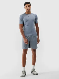 Spodenki nie posiadają podszycia, dzięki czemu są lżejsze i odpowiednie podczas treningu w cieplejsze dni. Posiadają średni stan oraz krótkie nogawki. Krótkie spodenki treningowe męskie są wykonane z materiału syntetycznego, który zapewnia trwałość i jest łatwy w pielęgnacji. Dzięki dodatkowi elastanu (8%) są lekko rozciągliwe i wygodnie układają się na sylwetce. Krótkie spodenki sportowe męskie z szybkoschnącymi włóknami w technologii 4FDry, które wspierają odprowadzanie wilgoci z dala od ciała.