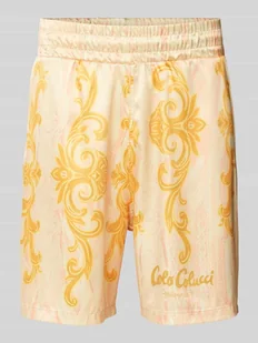 Szorty z dzianiny dresowej męskie Carlo Colucci;Mieszanka materiałów z dodatkiem streczu;Krój regular fit;Wzór na całej powierzchni;Elastyczny pas;Boczne wpuszczane kieszenie;Szerokość w pasie w rozmiarze M: 39 cm;Długość wewnętrzna nogawki w rozmiarze M: 16 cm