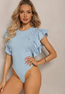 Niebieskie Bawełniane Body z Rękawami z Falbanek Zapinane na Napy Gilines