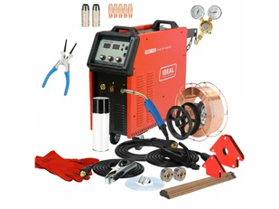 preparat antyodpryskowy 400 ml  drut spawalniczy SG2 1,0 mm / 15,0 kg  reduktor duży ARG/CO2 z dwoma manometrami  rękawice spawalnicze 1 para  dysza gazowa 2 szt. końcówka prądowa 5 szt. elektrody spawalnicze rutylowe / 1,0 kg  kątownik magnetyczny 11,0 kg  kątownik magnetyczny 22,0 kg  szczypce spawalnicze  adapter szpuli drutu  wąż do podłączenia gazu + opaski zaciskowe  Pakiet akcesoriów 2: preparat antyodpryskowy 400 ml  drut spawalniczy SG2 1,0 mm / 15,0 kg  reduktor duży ARG/CO2 z dwoma manometrami  butla z mieszanką ARG/CO2 8 litrów (nowa, pełna, 10-letnia legalizacja, kołpak chroniący zawór)  rękawice spawalnicze 1 para  dysza gazowa 2 szt. końcówka prądowa 5 szt.