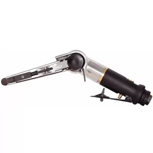 18000 obr./min Gwint łączenia: 1/4'' Tryb pracy: pneumatyczny Regulowana głowica 360 stopni Antypoślizgowy, miękki uchwyt izolowany Wylot powietrza przez rączkę Tłumienie drgań Odpowiednia do taśm szlifierskich o długości 330 mm Idealna do wąskich obszarów (szerokość taśmy 10 mm) Bezstopniowa regulacja prędkości Ze złączem 1/4"