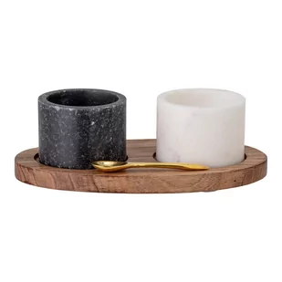 Komplet marmurowej solniczki i piprzniczki z drewnianą podkładką i łyżeczką Bloomingville Florio