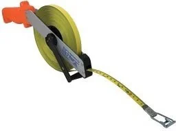 Pełne metry zaznaczone są kolorem czerwonym, podział cm i mm - kolorem czarnym. Taśma koloru żółtego. Długość taśmy: 50 metrów, a szerokość 13mm. Idealna do pomiarów geodezyjnych i budowlanych wśród różnorodnych przeszkód terenowych.
