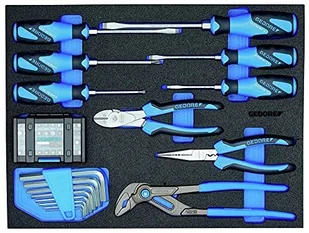 418 Materiał: Pianka Przechowywanie: Sprawdź moduł narzędziowy dla WORKMO lub L-BOXX 136 Lista części Wkrętak 3C z rowkiem Nr 2154SK 3,5 5,5 6,5 8 mm wkrętak 3C krzyżakowy nr 2160SK PH 1 2 Zestaw wkrętaków z gniazdem sześciokątnym nr PH 42-88, 6kt SW 2 2,5 3 4 5 6 8 10 mm Szczypce uniwersalne nr 142 10 TL, 10" Szczypce uniwersalne nr 8133-200 JC, 200 mm 2-komponentowy uchwyt Szczypce do cięcia ukośnego nr 8316-180 JC, 180 mm rękojeść 2C pojemnik na bity 1/4" nr 666-032-A, 32 szt Asortyment narzędzi Gedore w module CT dla B2 49 sztuk - 1110 CTB2-02, nr artykułu: 3005232 - Zestaw narzędzi GEDORE do codziennego użytku w warsztacie - Idealny do dużych i małych prac konserwacyjnych i montażowych - Odpowiedni dla przemysłu, handlu, motoryzacji i ambitnych majsterkowiczów - Odpowiedni asortyment GEDORE dla stażystów, czeladników, mistrzów lub majsterkowiczów, w zależności od potrzeb - Wkrętak udarowy, dodatnie połączenie między rękojeścią a grotem zapewnia optymalne przenoszenie mocy - Moduły CTB2 mieszczą się w szufladach wózka narzędziowego WORKMO® i w skrzynce narzędziowej L-BOXX® 136 Gama narzędzi GEDORE opracowana na podstawie codziennych doświadczeń warsztatowych, idealna do dużych i małych prac konserwacyjnych i montażowych, odpowiednia dla przemysłu, handlu, motoryzacji i ambitnych majsterkowiczów