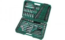 TYLKO TERAZ Zestaw 150 częściowy kluczy nasadowych 1/4" 3/8" 1/2" metrycznych calowych z kluczami płasko - oczkowymi 10 szt. nasadek 6-kątnych 1/4" metrycznych: 4 5 6 7 8 9 10 11 12 13 mm 10 szt. nasadek 6-kątnych 1/4" calowych: 5/32" 3/16" 7/32" 1/4" 9/32" 5/16" 11/32" 3/8" 7/16" 1/2" 4 szt.