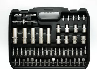 - grzechotki 1/4" i 1/2" - nasadki krótkie na 1/4" i 1/2" - nasadki długie 1/4" i 1/2" - przeguby Cardana 1/4" i 1/2" - przedłużki 1/4" i 1/2" - klucze do świec - wkrętak do nasadek - pokrętła 1/4" i 1/2" - bity osadzone w nasadce 1/4" - bity do używania z adapterem załączonym w zestawie - nasadki torx (E) 1/4" i 1/2"