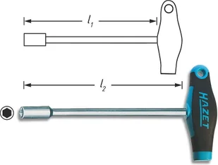 Ergonomiczny uchwyt HAZET wykonany z 2 rodzajów tworzyw $411 Wersja krótka $412 Powierzchnia: chromowana $413 Rozmiar klucza: 10 $414 Długość całkowita: 264 mm $415 Długość (nasadki) l1: 230 mm $416 Końcówka: Profil sześciokątny, zewnętrzny $417 Średnica: 14 mm $418 Masa netto: 014 kg