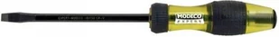 "Wkrętak ślusarski płaski Modeco wykonany ze stali hartowanej CR-V, gwarantującej trwałość i odporność na odkształcenia. Grot wyposażony jest w końcówkę płaską w rozmiarze 9,0 x 1,5 i twardości 46 - 50. Wykazuje właściwości magnetyczne, co sprawia, że dobrze trzyma śrubę. Posiada standardową rękojeść z powłoką antypoślizgową oraz klingę o długości 200 mm. Zaletą pracy wkrętakiem ślusarskim jest możliwość używania klucza do dokręcania śrub.