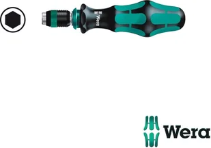 Wysokiej jakości rękojeść z uchwytem do grotów i końcówek. Chowany w rękojeści bagnetowy trzpień z mechanizmem szybkomocującym pozwala na szybką pracę nawet w trudno dostępnych miejscach. Uchwyt szybkomocujący Rapidaptor umożliwia szybką wymianę grotów i końcówek bez dodatkowych narzędzi. Magnes stały gwarantuje niezawodne przytrzymanie narzędzia. Rękojeść Kraftform zapewnia przyjemną i ergonomiczną pracę chroniąc dłoń przed powstawaniem pęcherzy i odcisków.