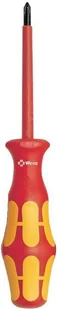 Wkrętak izolowany VDE z wielokomponentową rękojeścią Kraftform do szybkiej i bezpiecznej pracy: twarde strefy chwytu umożliwiają szybkie pokręcanie, miękkie strefy zapewniają przenoszenie wysokich momentów obrotowych. Indywidualnie kontrolowana izolacja poprzez zanurzenie w kąpieli wodnej pod napięciem 10000 V gwarantuje bezpieczeństwo pracy pod napięciem 1000 V. System wyszukiwania narzędzi "Take it easy" z oznaczeniem kolorystycznym rozmiarów ułatwia i przyspiesza odnajdywanie właściwego narzędzia. Końcówka wkrętaków Lasertip posiada mikroskopijne rowki wypalane promieniem lasera, tworzące chropowatą powierzchnię, która dosłownie "wgryza się" w gniazdo wkrętu.
