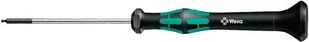 Wysokiej jakości wkrętak Kraftform Micro do prac w mechanice precyzyjnej. Końcówka kulista: kulka umieszczona na końcówce wkrętaka pozwala na odchylanie osi narzędzia względem osi wkrętu, umożliwiając dokręcanie i odkręcanie pod kątem. Możliwość wsparcia dłoni na obrotowym kołpaku oraz strefa pokręcania znajdująca się bezpośrednio poniżej kołpaka umożliwiają szybkie obracanie wkrętaka palcami. Eliminuje to całkowicie czasochłonne pokręcanie.