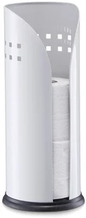 Praktyczny pojemnik łazienkowy do przechowywania papieru toaletowego. Pomieści aż 3 rolki i sprawi, że papier będzie zawsze w zasięgu ręki. Wyposażony w otwór ułatwiający sięganie po zawartość. Wysokiej jakości metal malowany na kolor biały. Spód z antypoślizgowego tworzywa sztucznego.