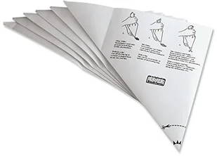 Klasyczne dekoracje są tak samo łatwe do wykonania, jak oryginalne i nowatorskie projekty nowych wypieków. Nasza rada: Za pomocą rękawa do wyciskania można dekorować pikantne potrawy. Nadaje się również do majonezu, puree i innych kremowych potraw. wykonane ze specjalnego papieru powlekanego tworzywem sztucznym Jednorazowe rękawy cukiernicze KAISER, opakowanie 6 szt