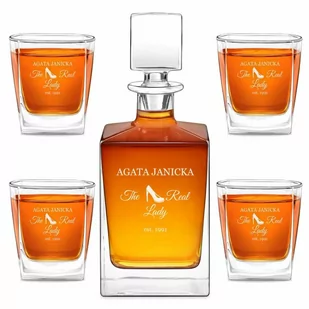 Spersonalizowana karafka do whisky cube z 4 szklankami capitol i grawerunkiem dla konesera whisky na wyjątkową okazję.