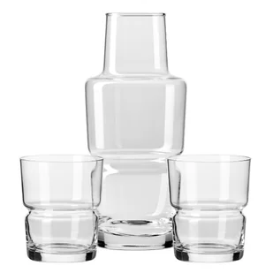 Trzyczęściowy komplet do wody, w którego skład wchodzi karafka oraz dwie szklanki, zachwyca przemyślaną strukturą i jedwabistą gładkością bezołowiowego kryształu. Ręczne formowanie przez mistrzów rzemiosła nadaje naczyniom unikalny charakter oraz nieskazitelną przejrzystość, pozwalającą światłu swobodnie podkreślać barwę serwowanych napojów. Zarówno smukła karafka, jak i szklanki, posiadają wygodne przewężenie, które zapewnia pewny i komfortowy chwyt podczas nalewania. Innowacyjna konstrukcja zestawu pozwala na wykorzystanie szklanki jako szczelnego zamknięcia karafki, co chroni zawartość przed kurzem i sprawia, że komplet idealnie sprawdza się na nocnym stoliku, w domowym biurze czy podczas spotkań przy wspólnym stole.