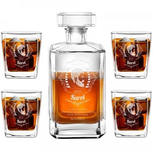 Spersonalizowany zestaw składający się z karafki i czterech szklanek to doskonała propozycja prezentu dla konesera whisky.
