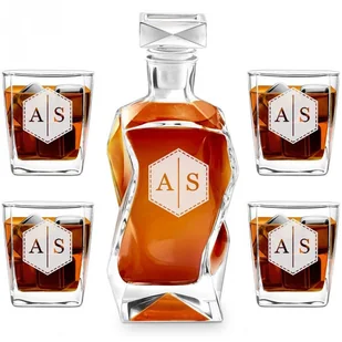 Murrano Zestaw Karafka Łamana z 4 Szklankami Grawer Inicjały Sześciokąt KARK_4xSZC-026