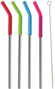 Excellent Houseware Słomki rurki STALOWE metalowe do napojów ekologiczne wielorazowe 4 sztuki + nakładki silikonowe czyścik