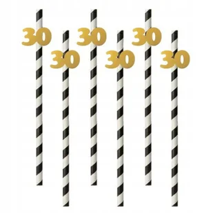 Słomki w paski 30 Urodziny złote Papierowe 6szt