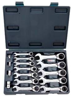 KS Tools 503.4653 GEAR+Zest kluczy plasko-oczk z grzechot. ekstra krótkich 16szt, 8-19mm z adapt