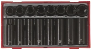 Zestaw 16 nasadek maszynowych 1/2 CrMo TENG TOOLS Nr kat. 68800200 Zestaw zawiera 16 nasadek do wkrętarek - krótkich i długich. Standard ANSI. Dostarczany w pojemniku plastikowym z odłączaną pokrywą. Pasuje do skrzynek i wózków narzędziowych Teng Tools.
