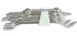 Zestaw dwustronnych kluczy płaskich 6-32 mm 50630. Wykonane ze stali węglowej. Główki kluczy odchylone o 15 stopni. Zawartość opakowania Klucz: 6x7 mm