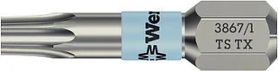 Wysokiej jakości groty ze stali nierdzewnej do wkrętów z gniazdem TORX(R). Narzędzia Wera produkowane ze stali nierdzewnej zapobiegają powstawaniu nieestetycznej korozji nalotowej. Strefa skrętna: strefa skrętna grotów absorbuje energię kinetyczną powstającą podczas obciążeń szczytowych. Zapobiega to przedwczesnemu zużyciu, wydłużając w ten sposób żywotność narzędzia.